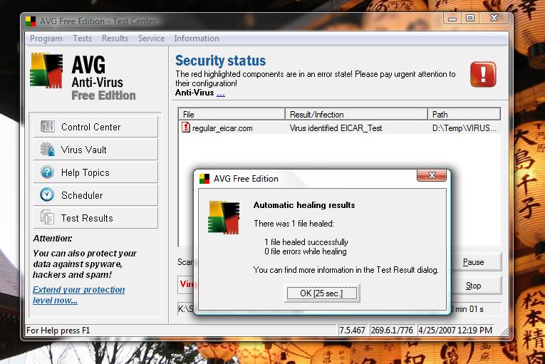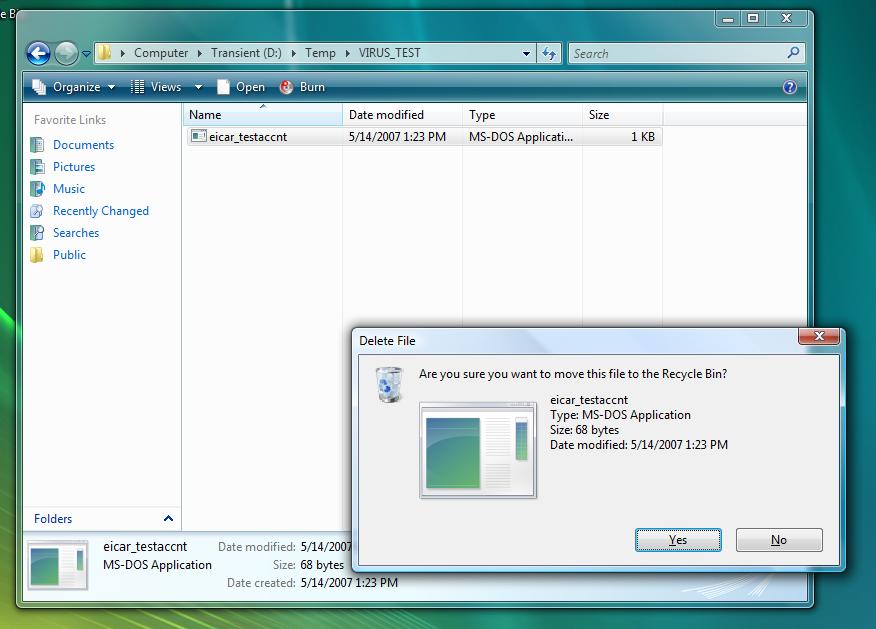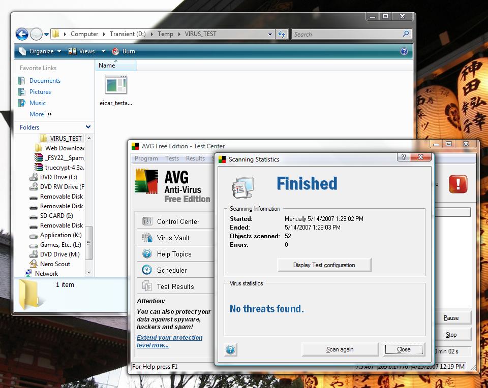 And what happened? Because all but the dummy account had read/write access to the file, when I ran AVG as any account but the dummy one created, it didn’t detect the viral file.