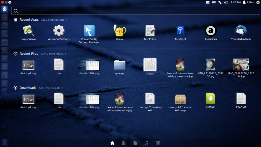 Making up for Unity’s deficiencies are the lenses, which let me search for applications and files with a simple press of the super button. Another great plus is its stability. Whereas gnome-shell used to crash on me occasionally, this has yet to do the same. I also like it’s integration with Google calendar via evolution, a feature also found in GNOME 3’s gnome-shell. Overall it works, and it works well.