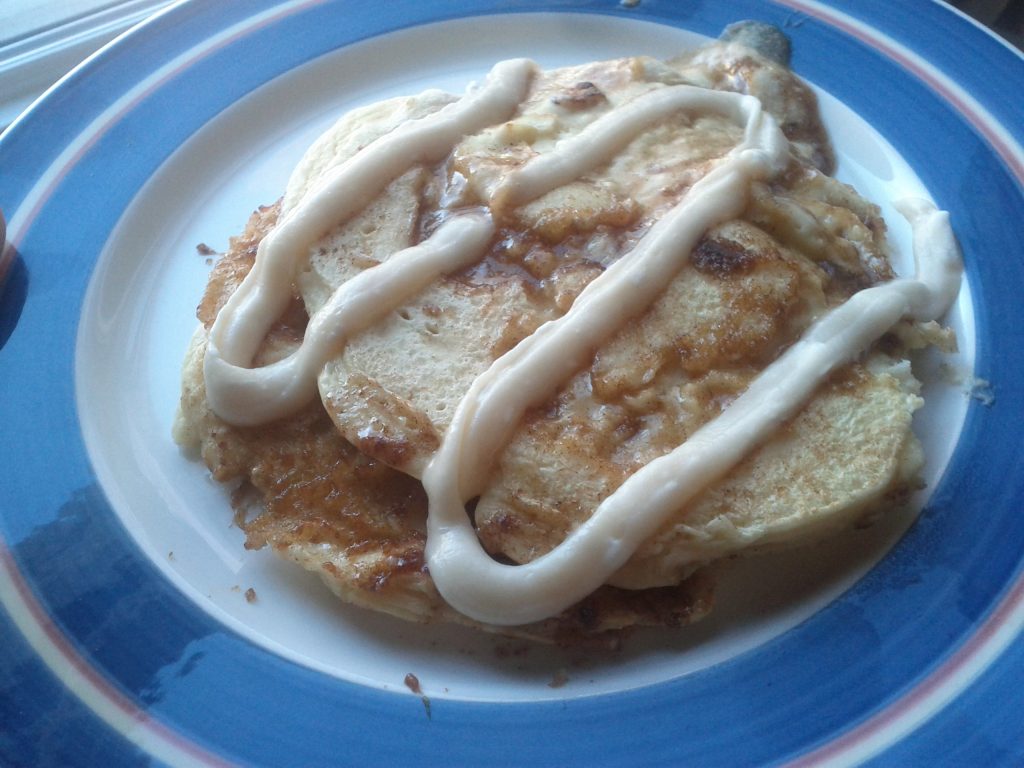 On that note, I made the really unhealthy cinnamon roll pancakes this morning. So good.