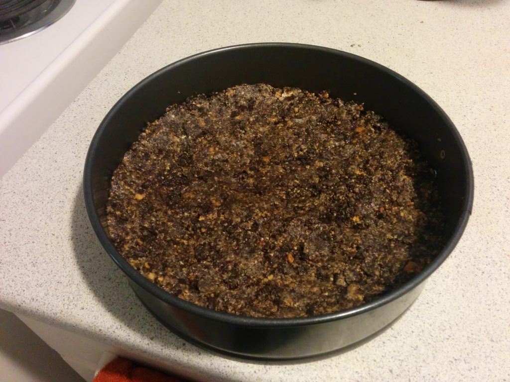 - Place the mixture at the bottom of a 10″ springform pan and pat it down.